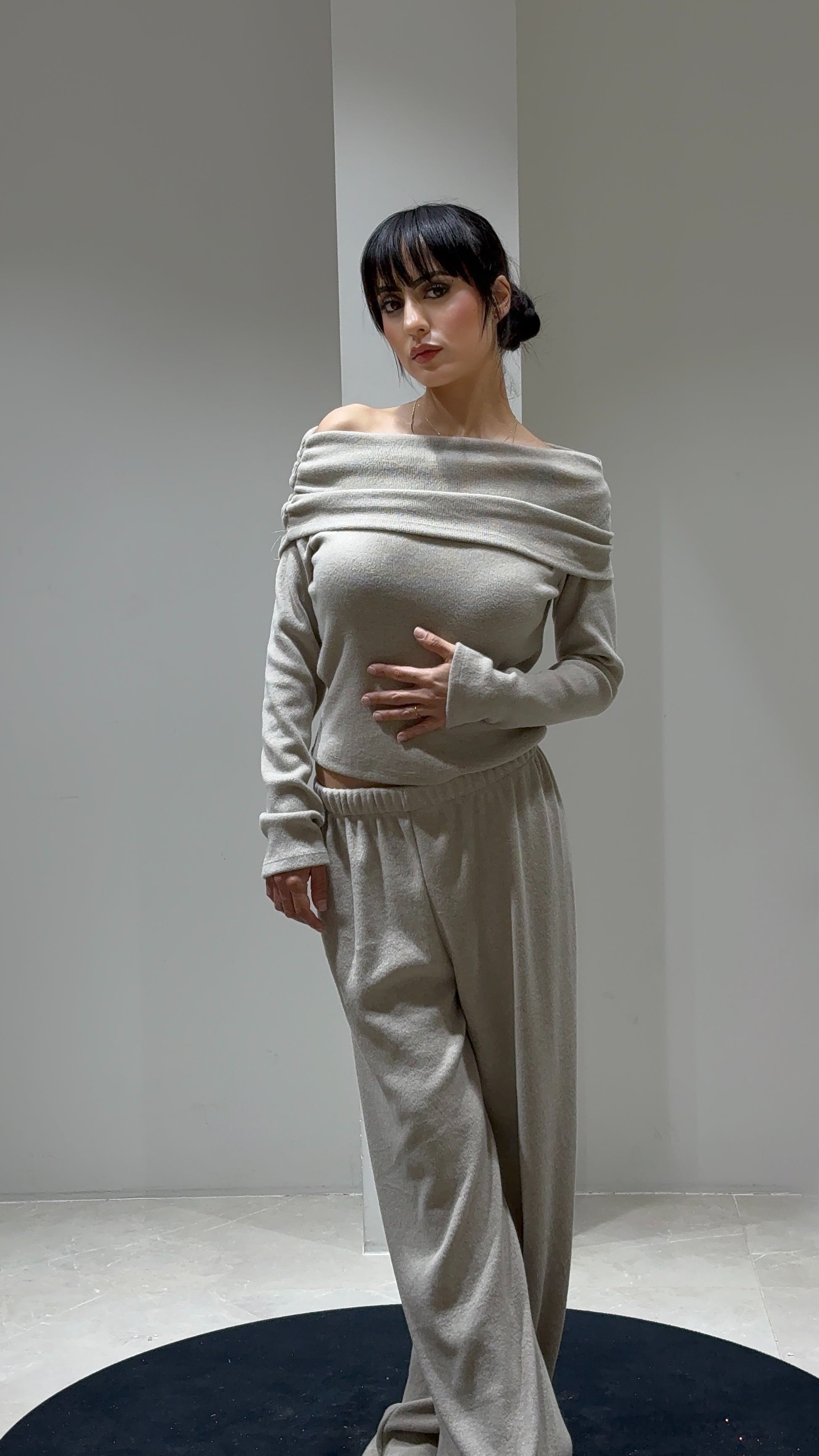 Cet ensemble pantalon et haut droit allie confort et élégance naturelle. Confectionné dans une matière douce et extensible, il est très agréable à porter, idéal pour la mi-saison ou l’hiver. Le haut droit légèrement tombant sur les épaules apporte une touche chic et décontractée, tandis que le pantalon à coupe fluide allonge la silhouette. Parfait pour un look élégant tout en confort.